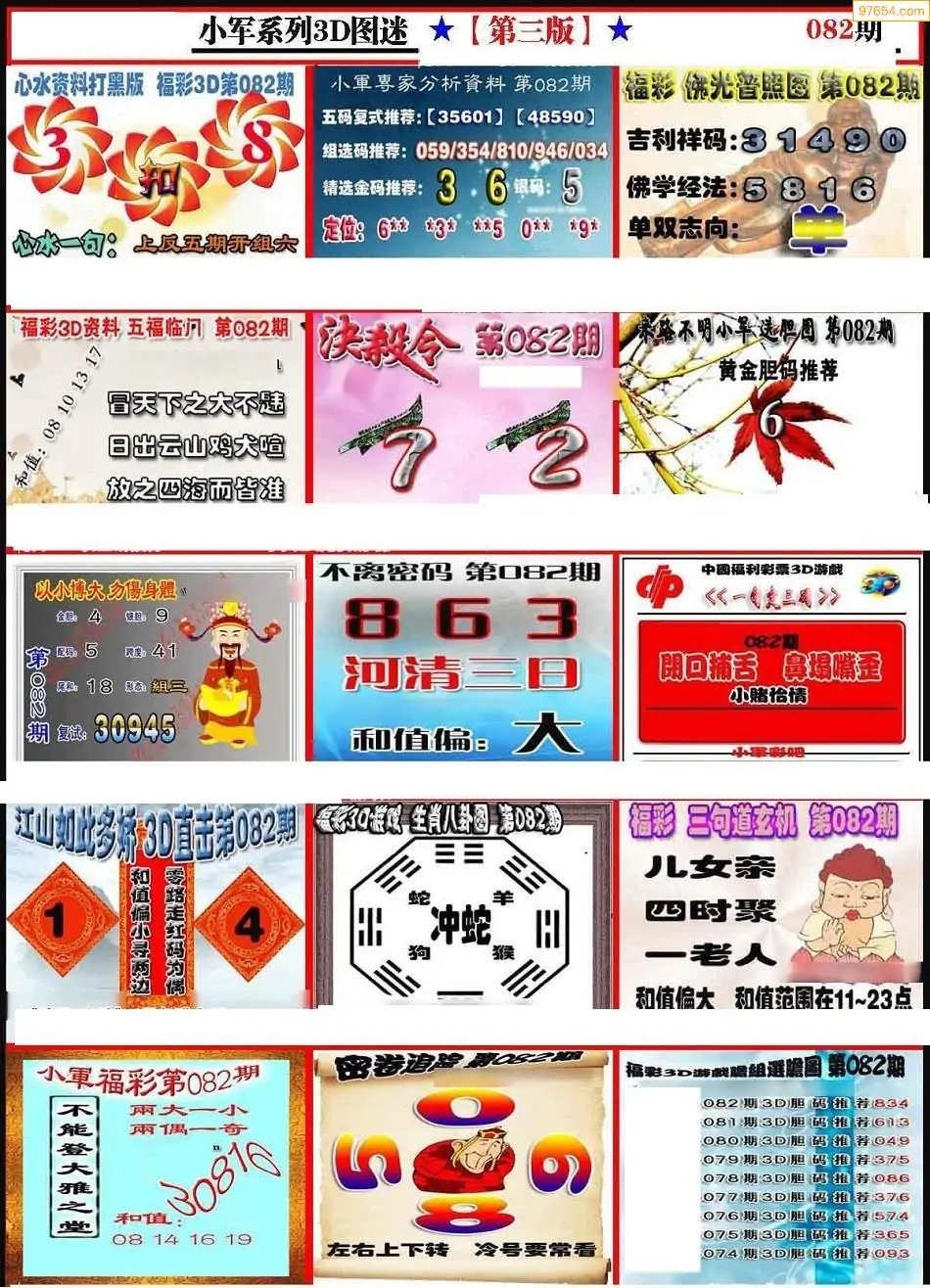 福彩3D082期天牛彩吧套图整合总汇