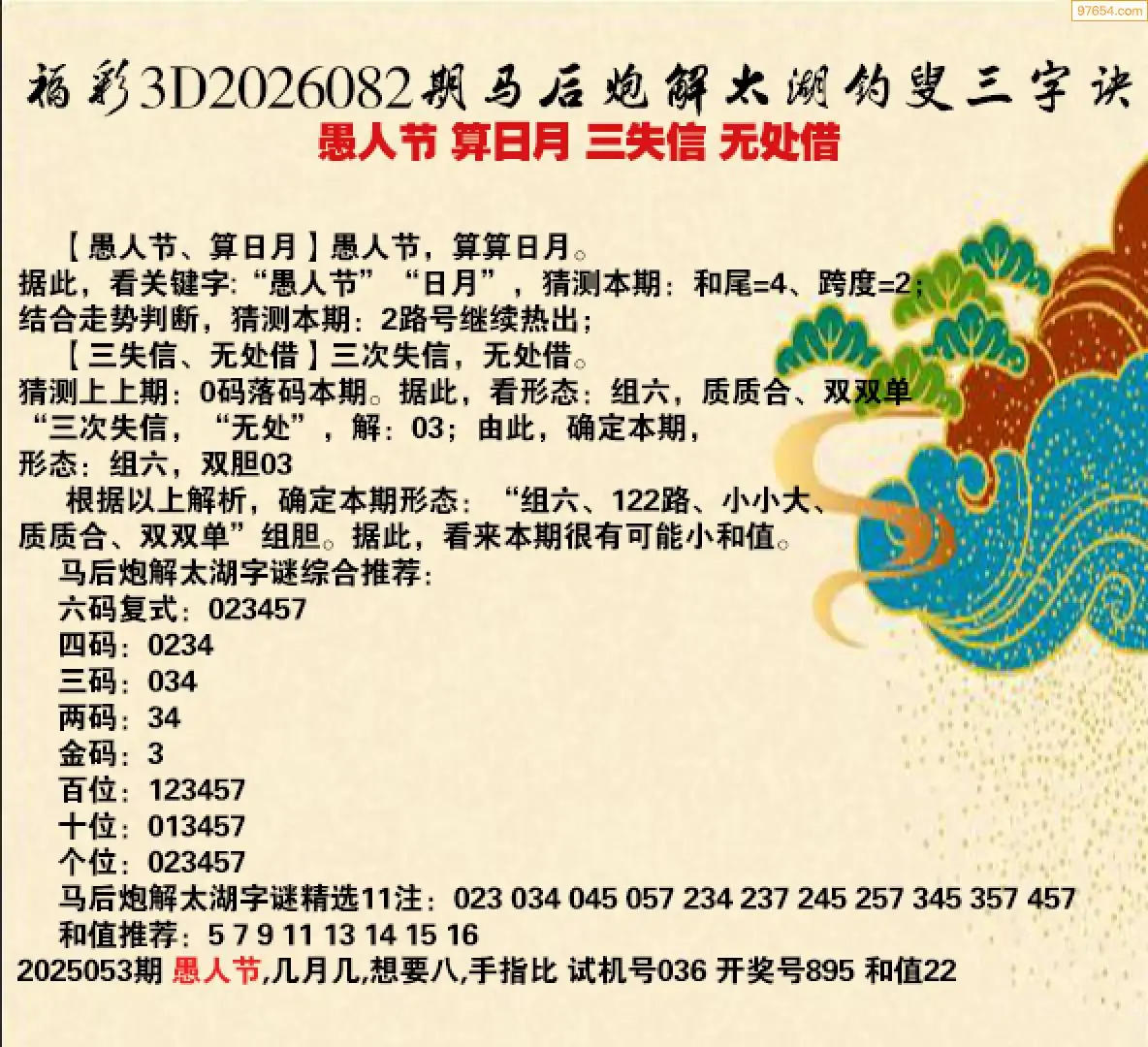 26年082期马后炮解3d太湖钓叟之 三失信