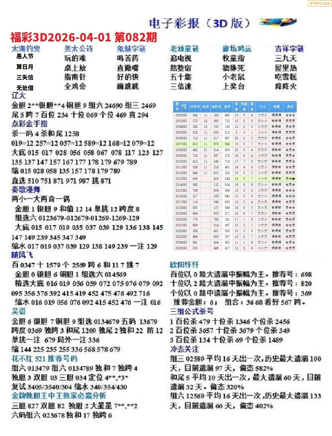 26年082期3D各板块资料整合汇总