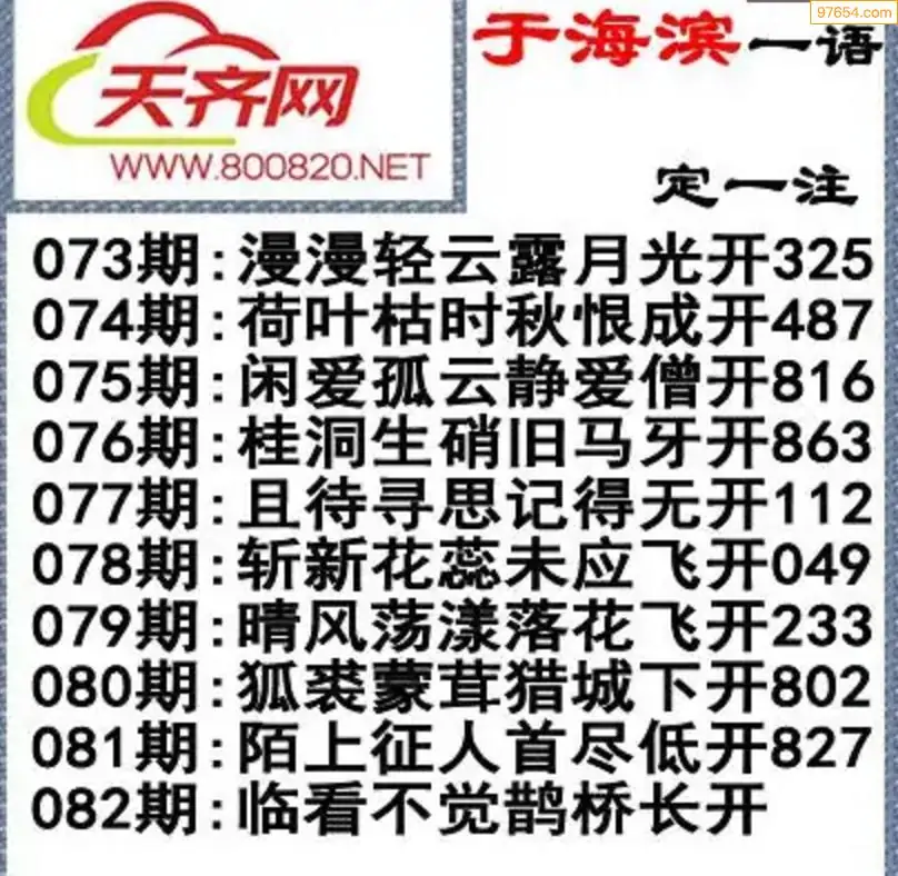 于海滨福彩3D26082期一语定一注
