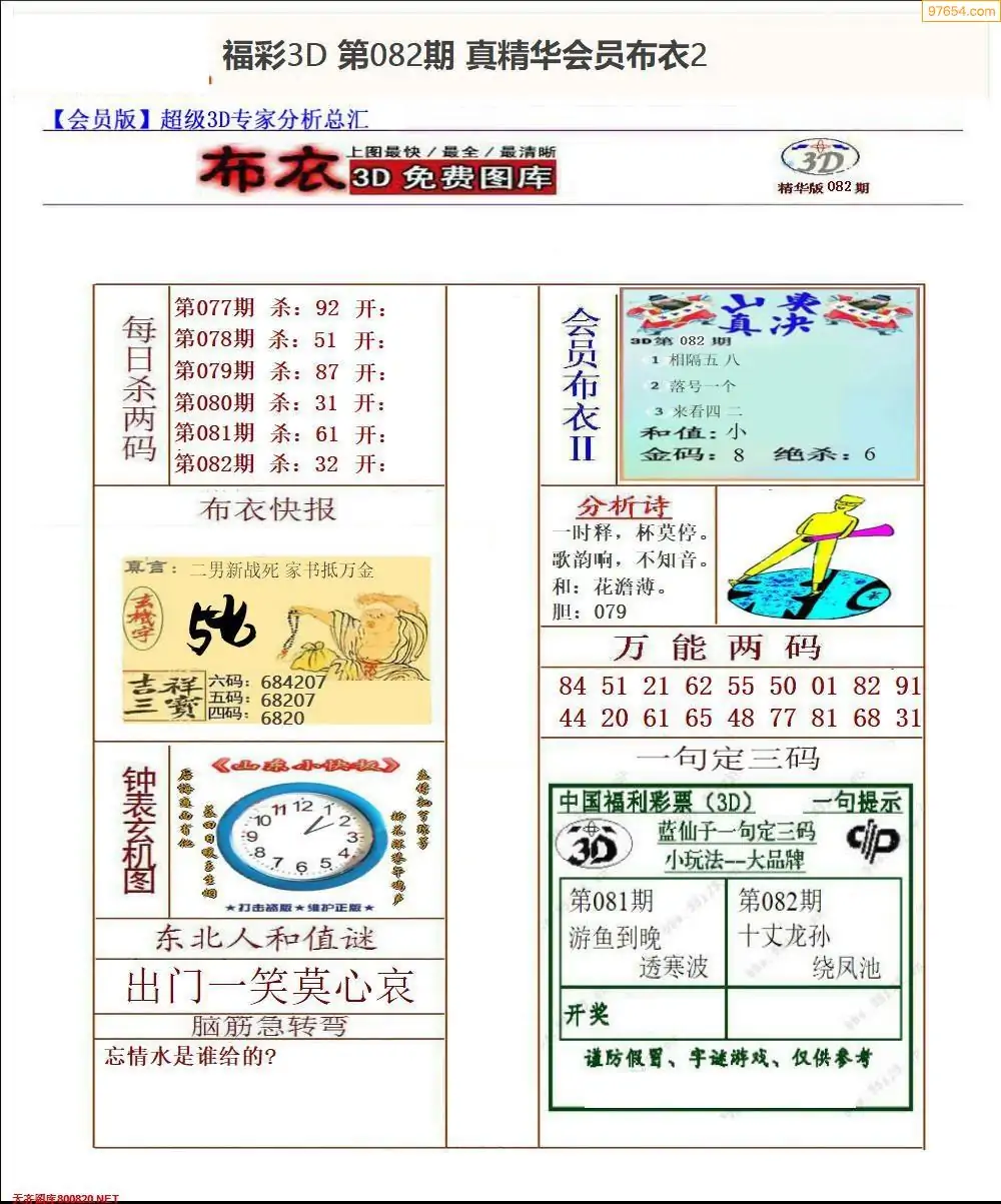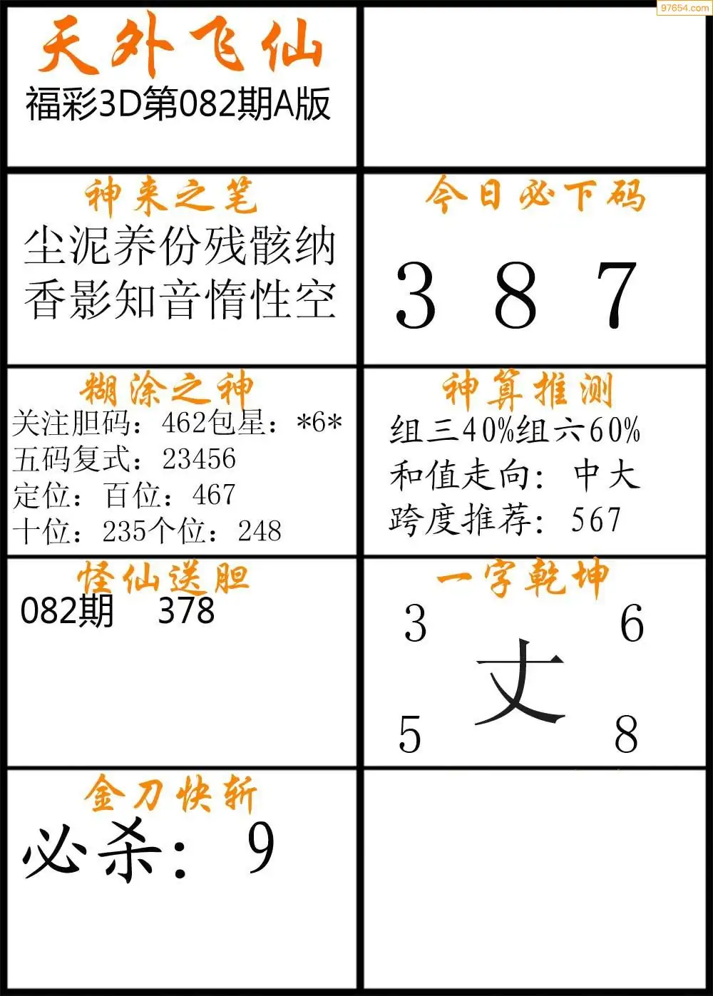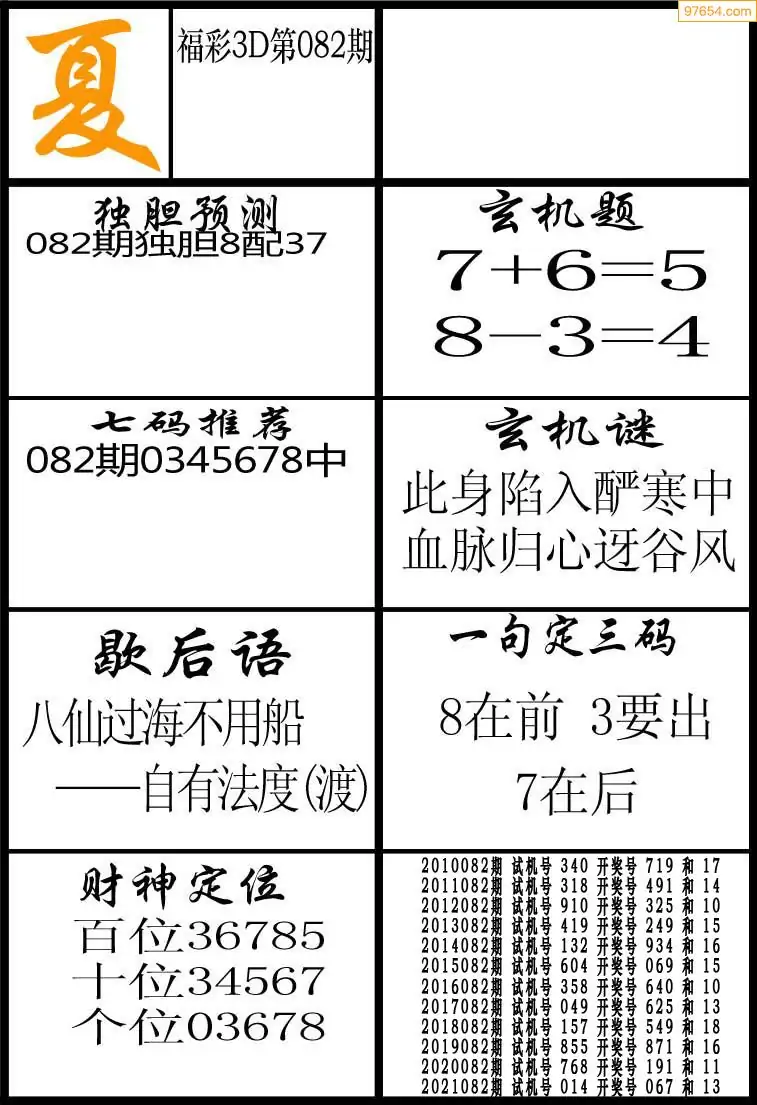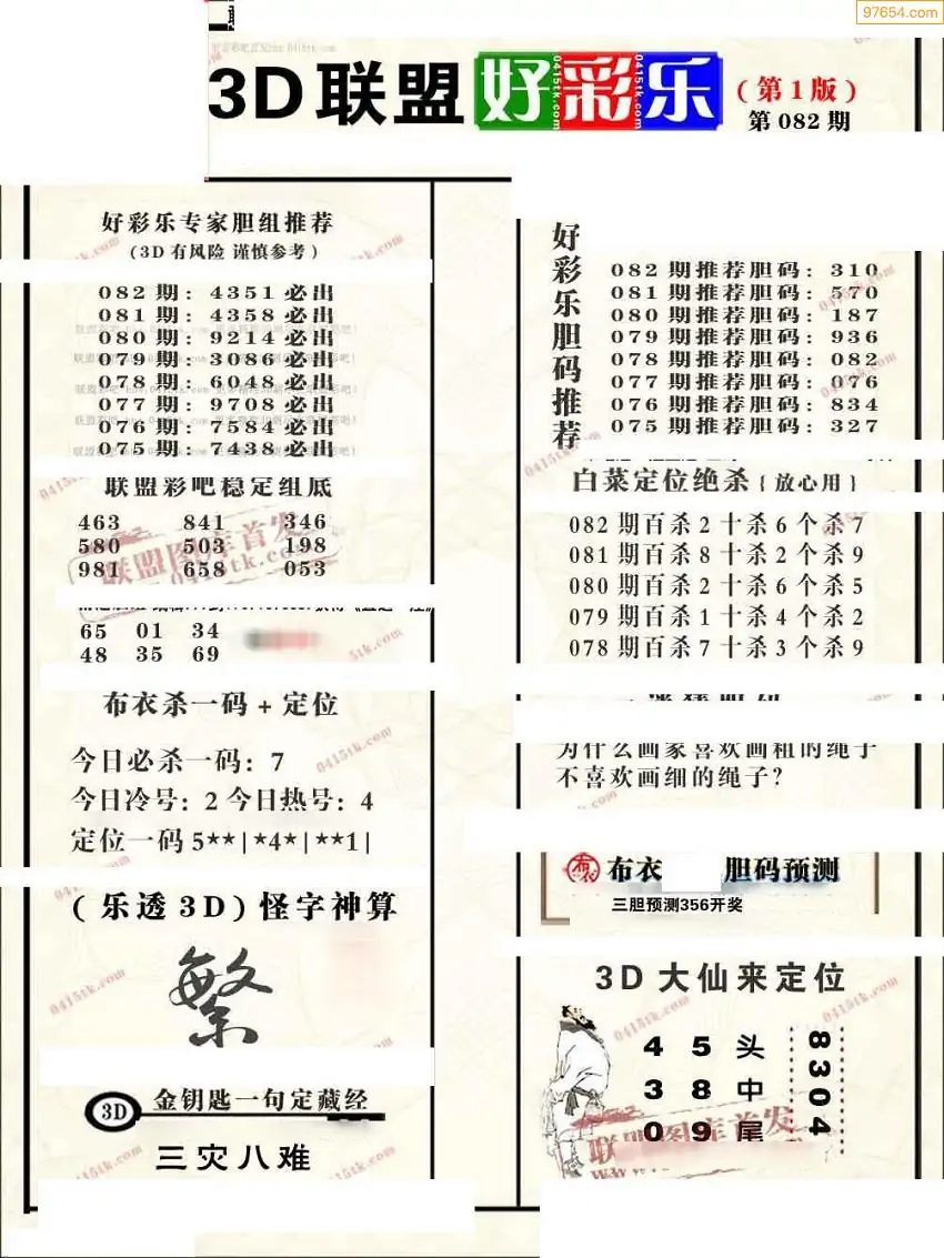 (2)26年082期本期3d图迷汇总_福彩3D图谜总汇图