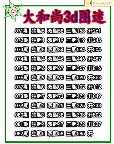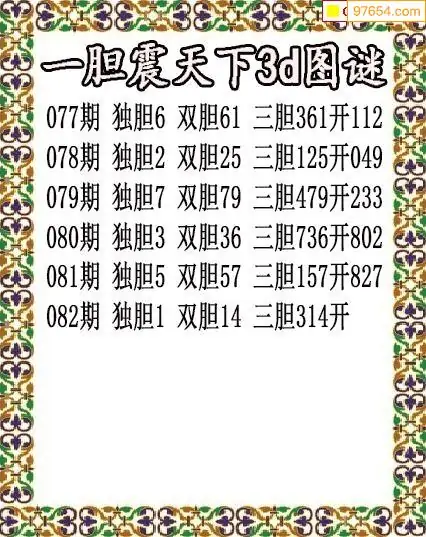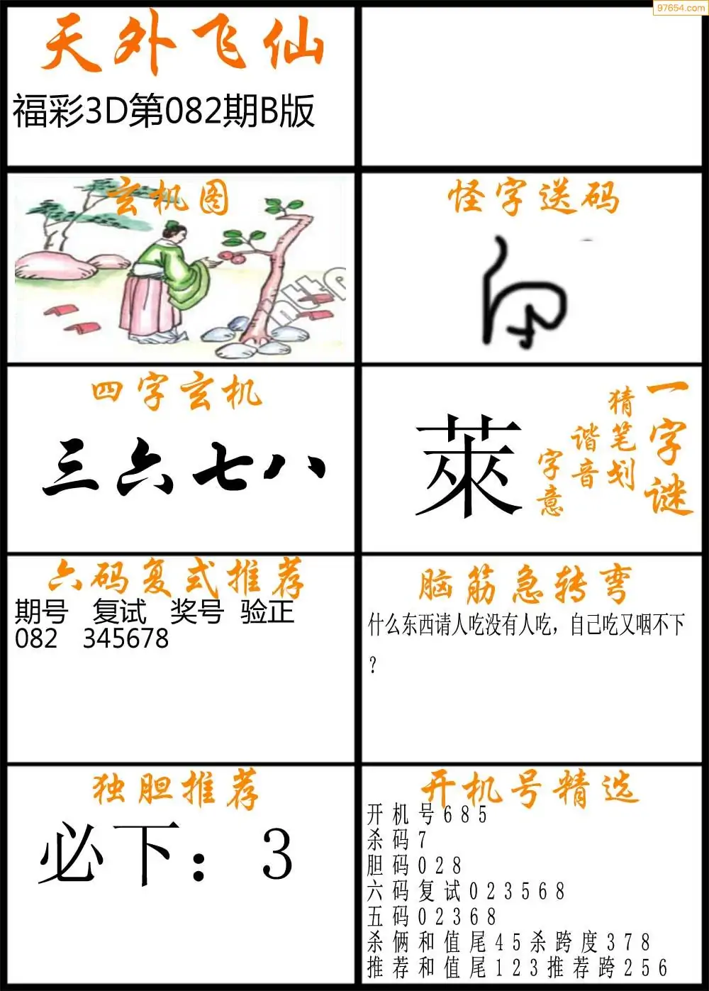 (3)2026082期3D预测总汇全图_福彩3d图谜字谜总汇
