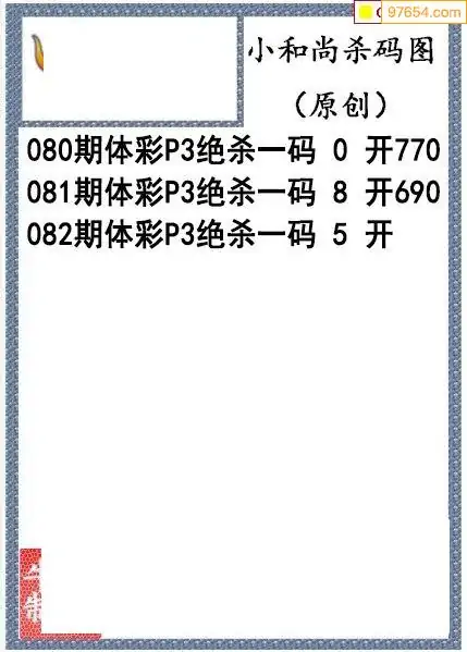 26年082期小和尚排列3杀码图