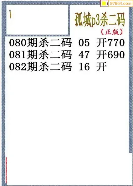 26年082期孤城本期杀码排3图谜
