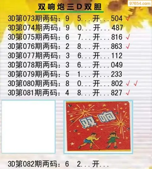 082期双响炮三D双胆分析