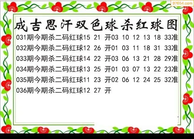 26年双色球036期成吉思汗杀二码红球图迷