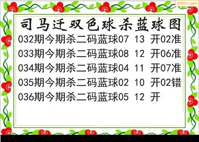 26年双色球036期司马迁杀二蓝破解图谜