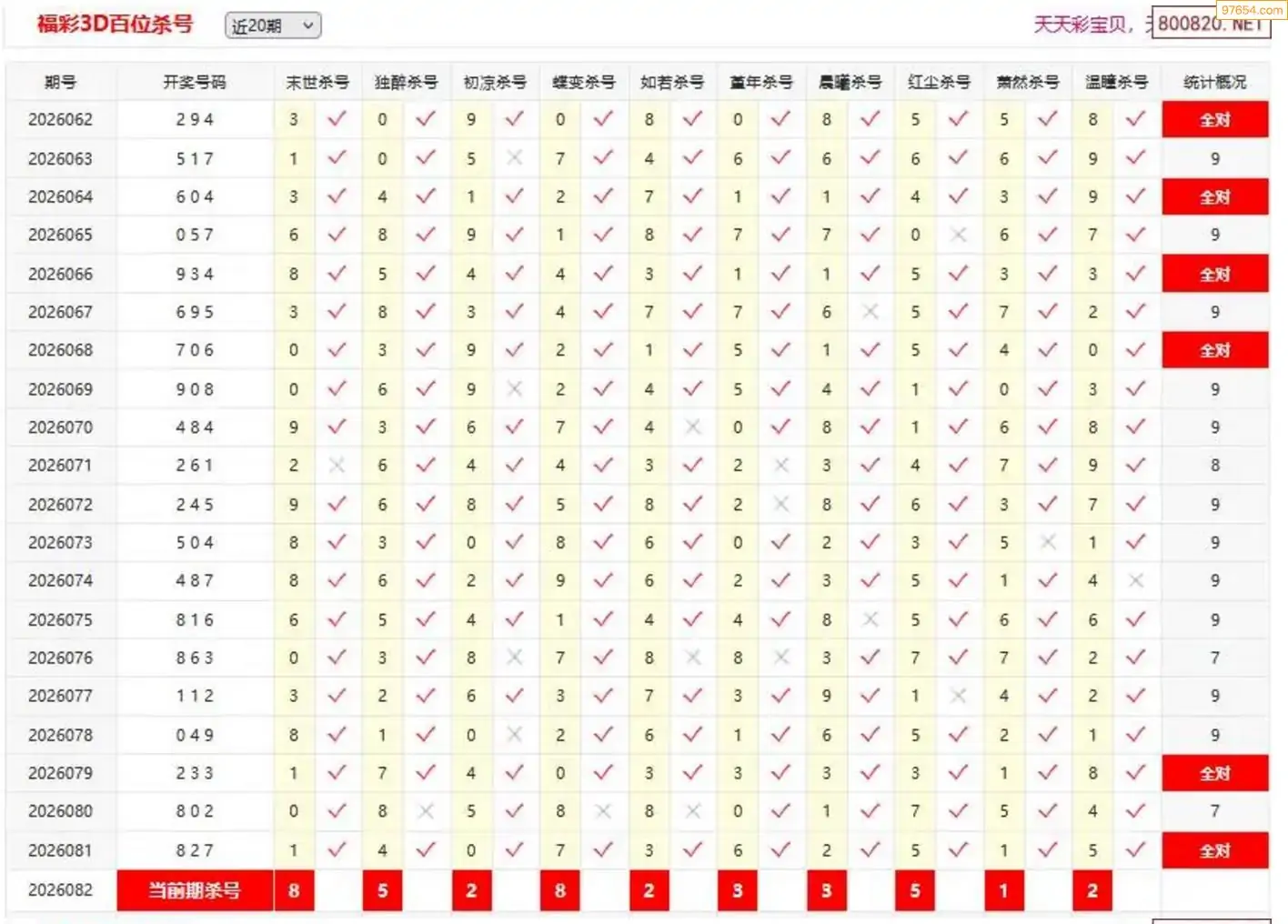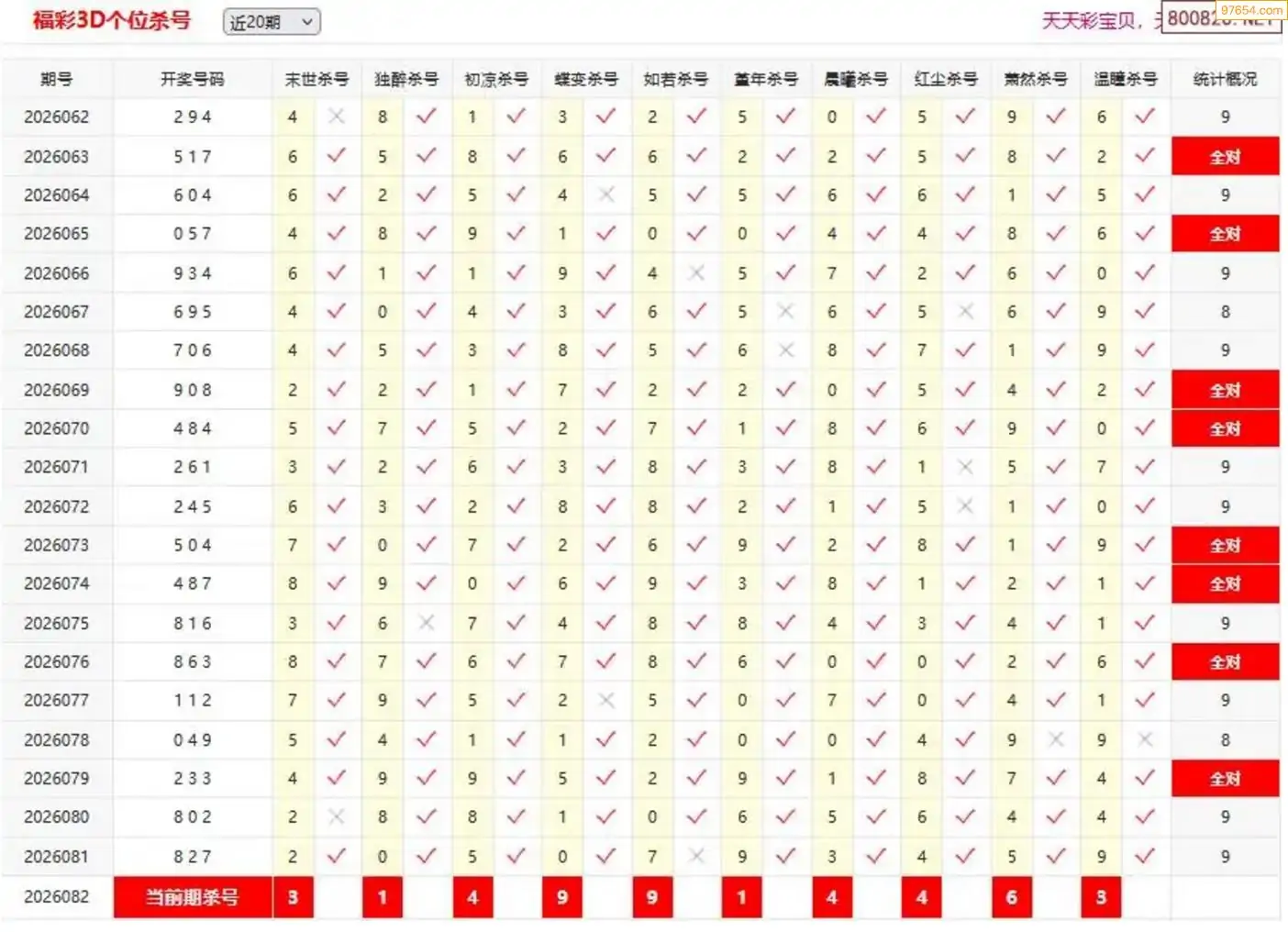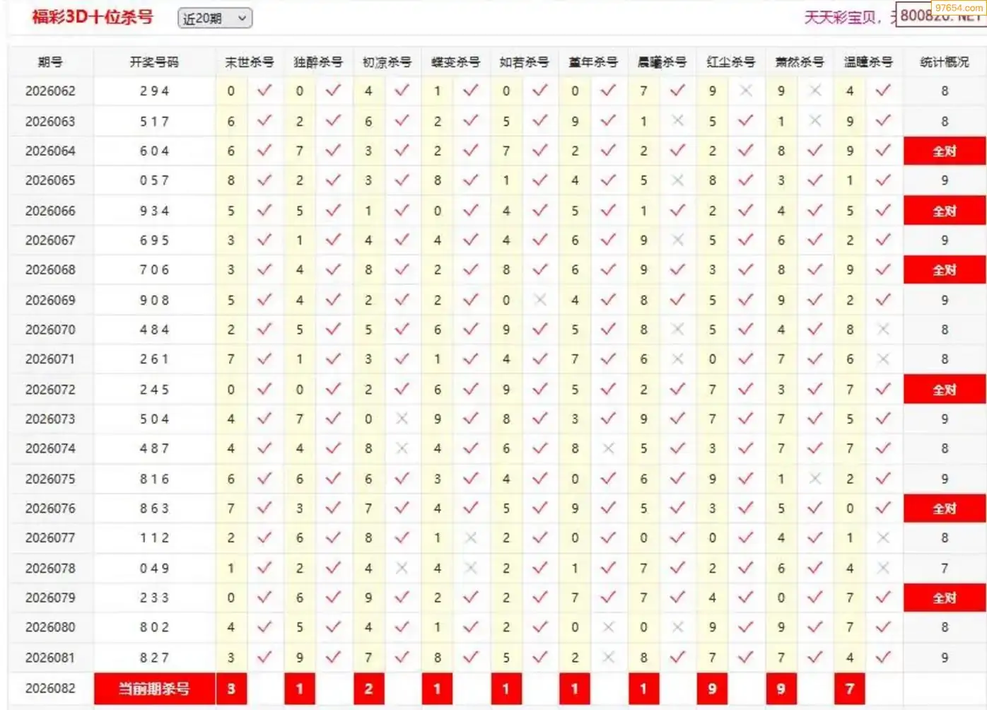 福彩3D26年082期杨树林分析杀码 13连中