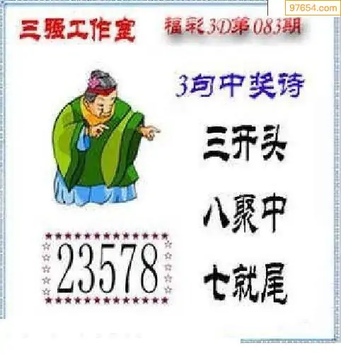福彩3D26083期蓝仙子一句定三码图谜