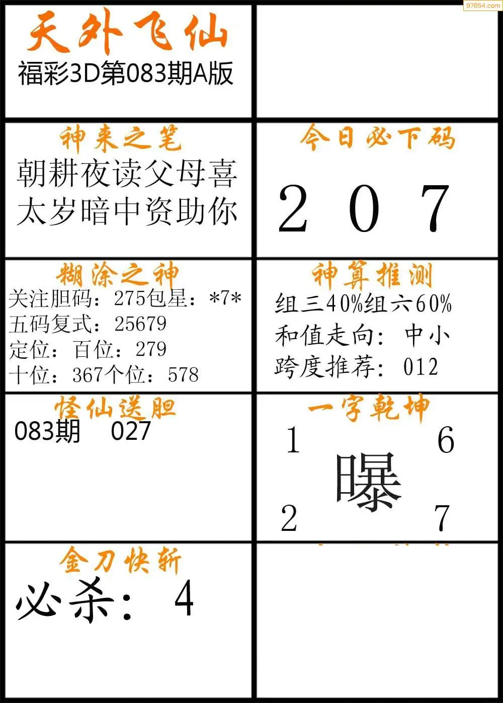 083期福彩3d天外飞仙A版
