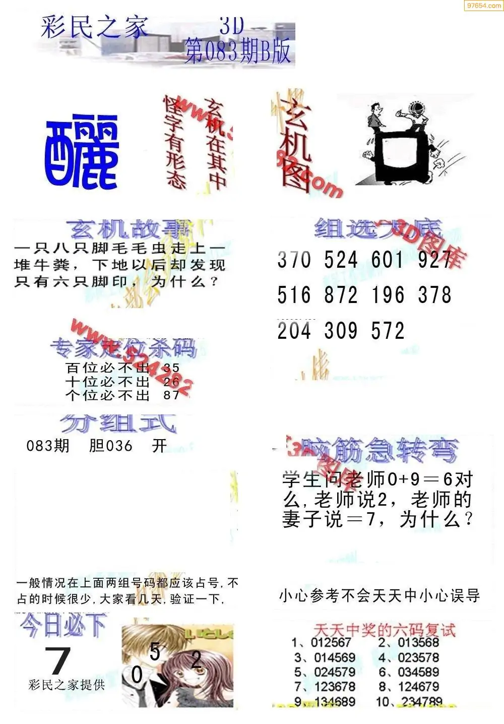 26083期3D彩民之家打印B版