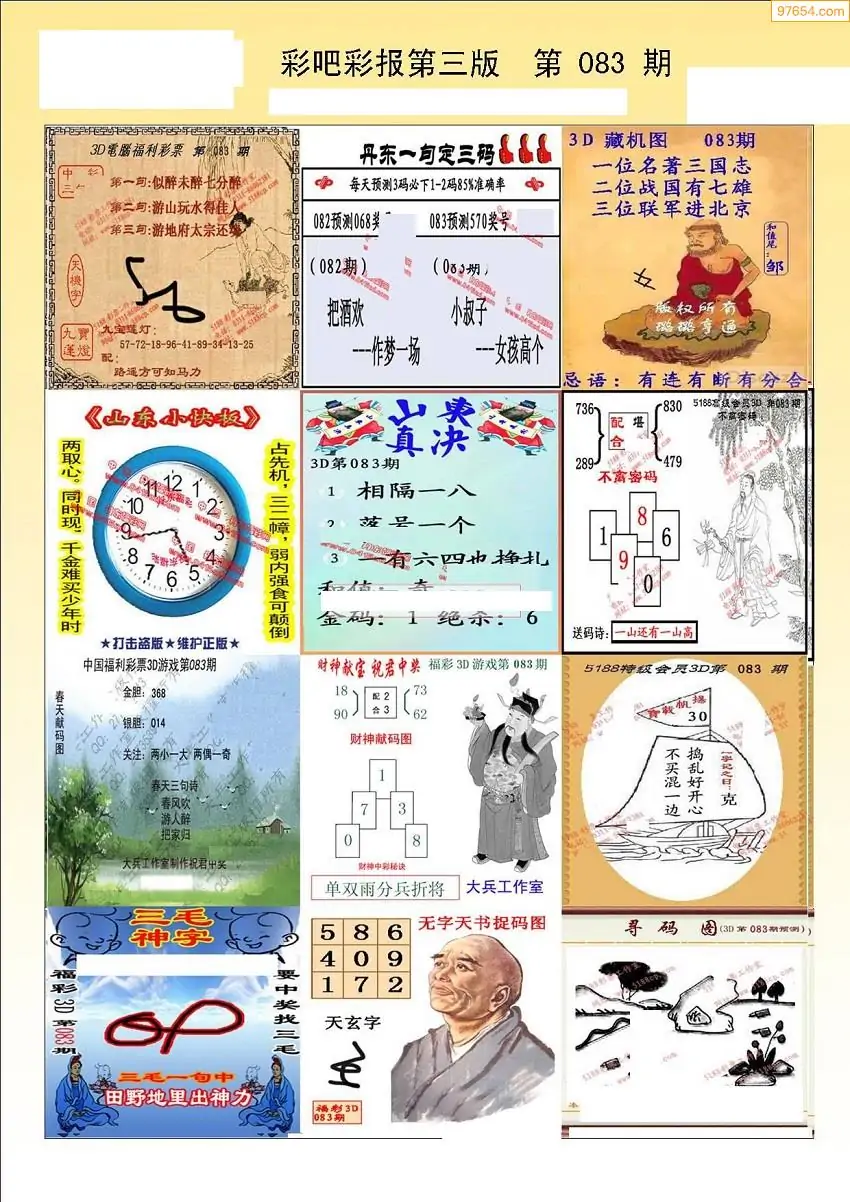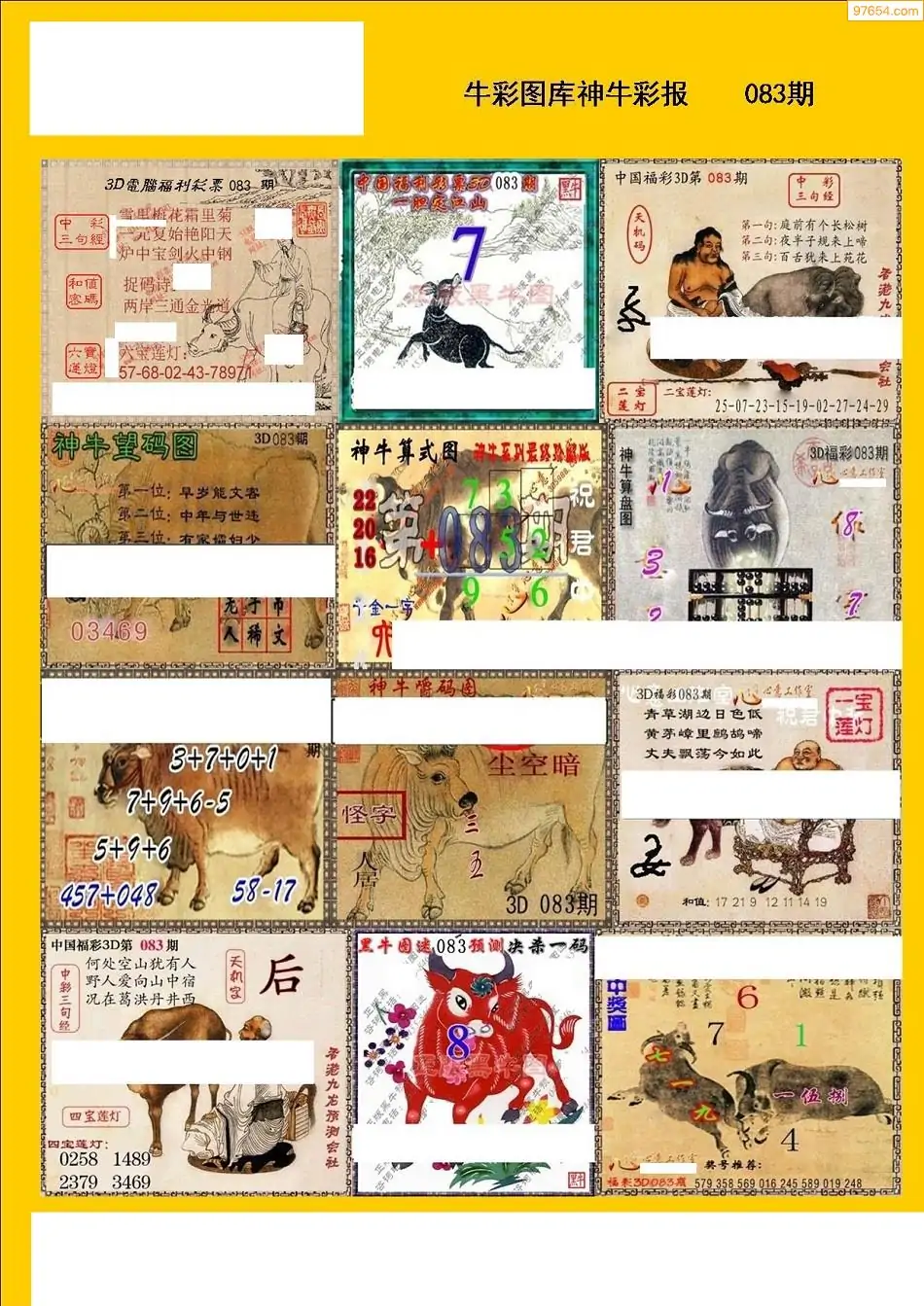 福彩3D083期天牛彩吧套图整合总汇