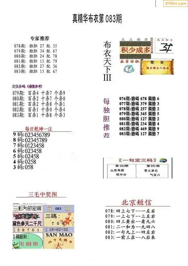 福彩083期3d真精华布衣+布衣早报(转载)