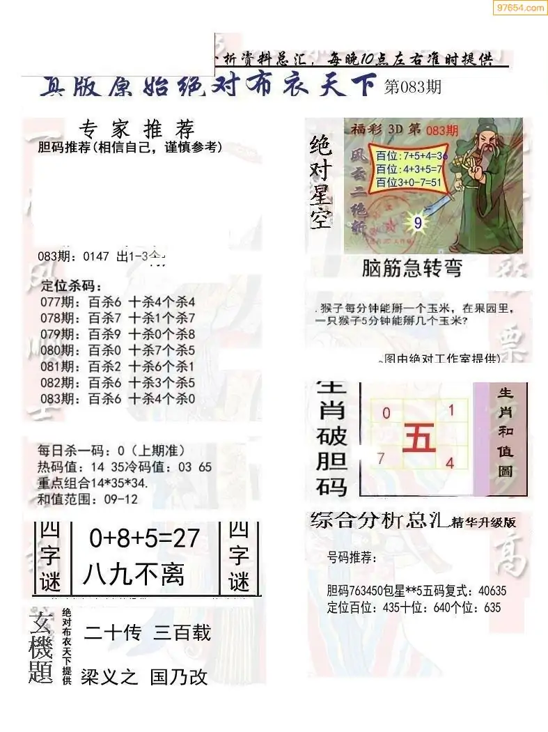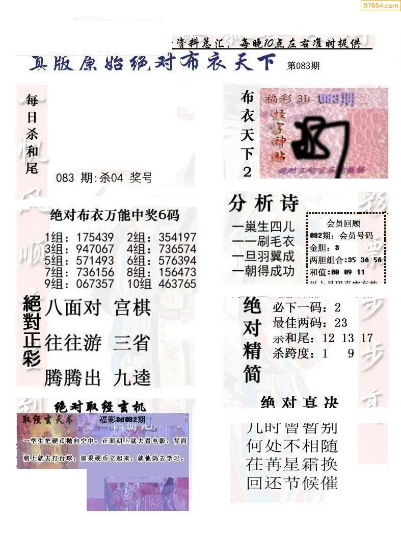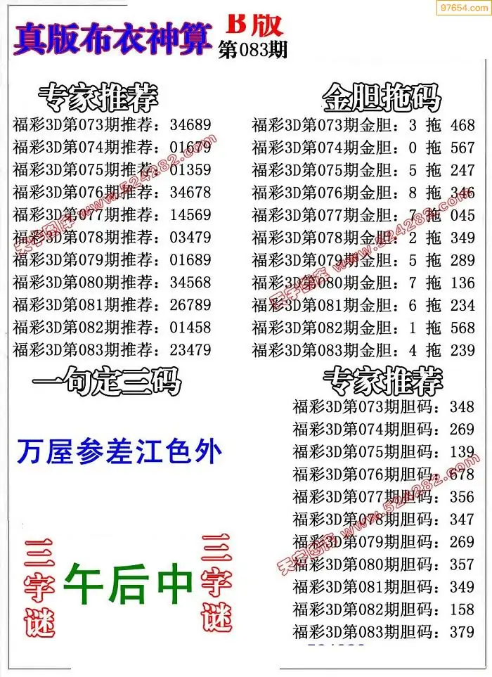 (2)26年083期本期3d图迷汇总_福彩3D图谜总汇图