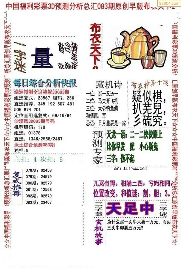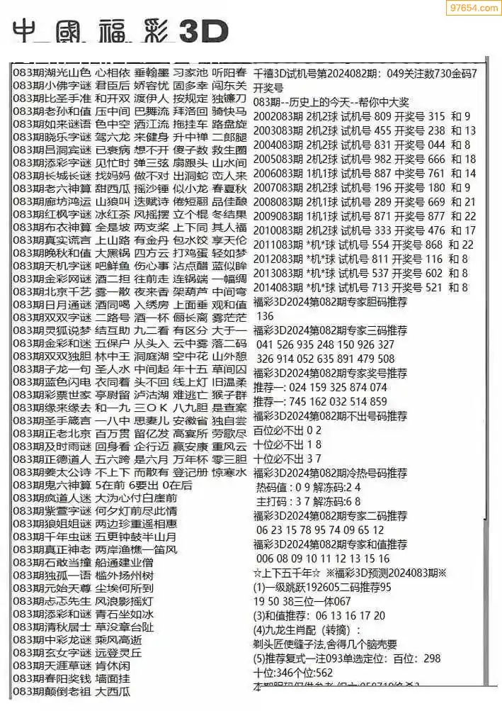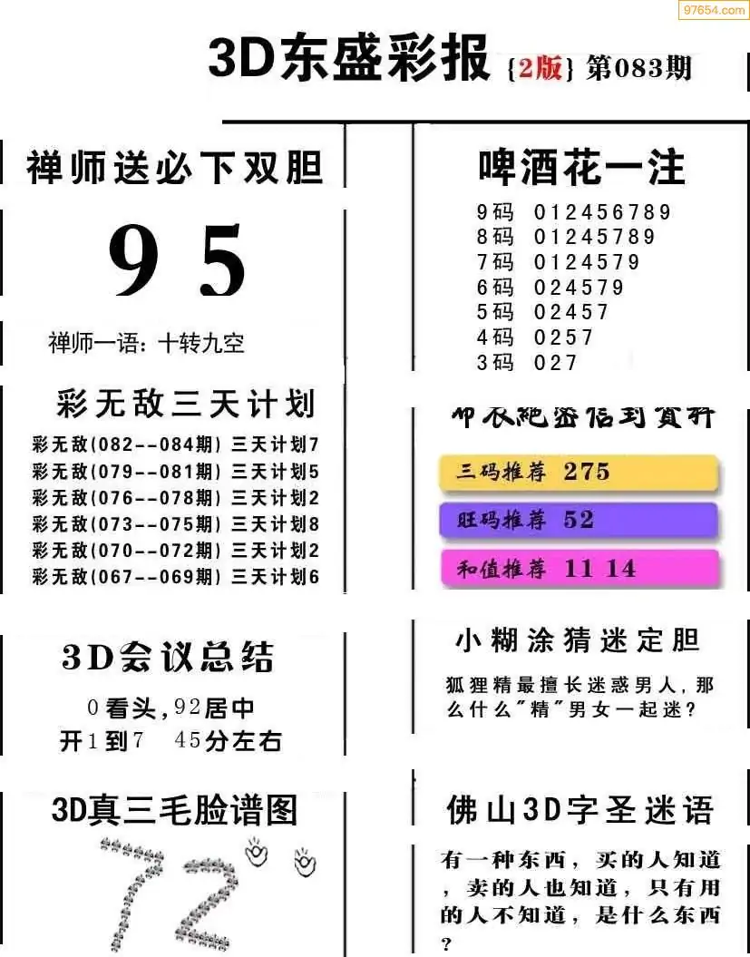 (3)2026083期3D预测总汇全图_福彩3d图谜字谜总汇