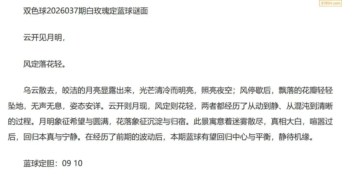 白玫瑰双色球26年037期定蓝球字谜