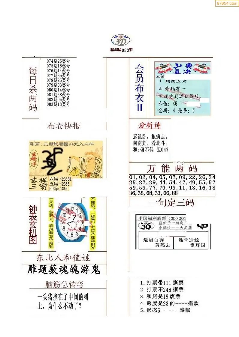 福彩083期3d真精华布衣+布衣早报(转载)