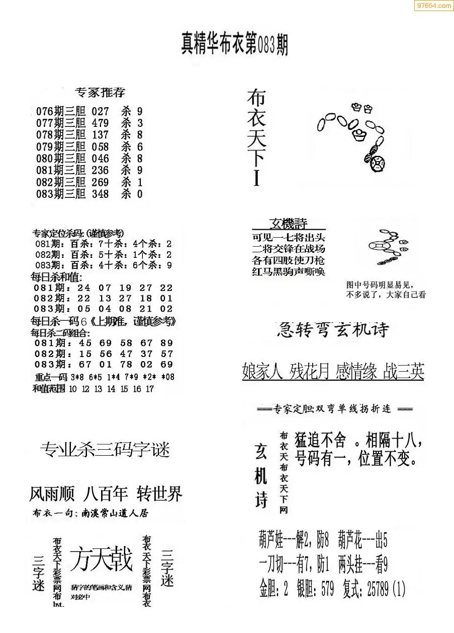 083期真版布衣神算专家推荐