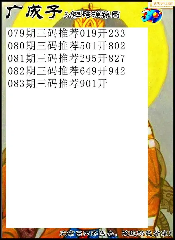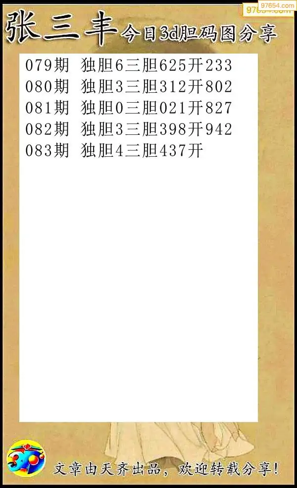 天齐网3d26年083期胆码图 胆:54