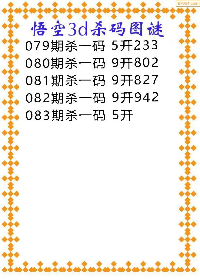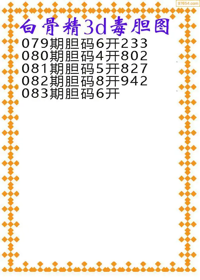 083期97654本站收集胆码出号预测