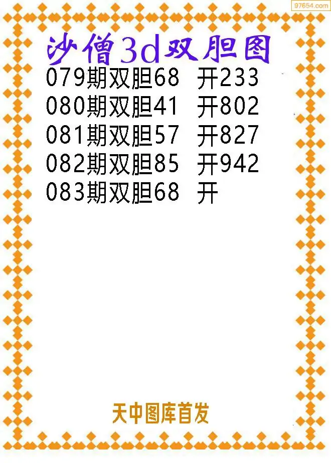 天齐网3d26年083期胆码图 胆:54