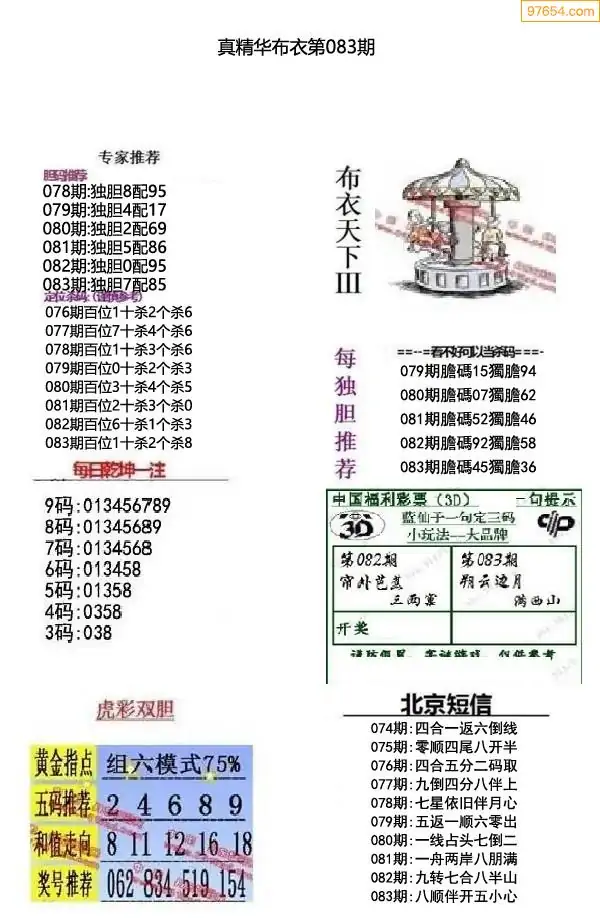 福彩083期3d真精华布衣+布衣早报(转载)