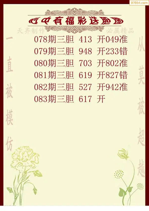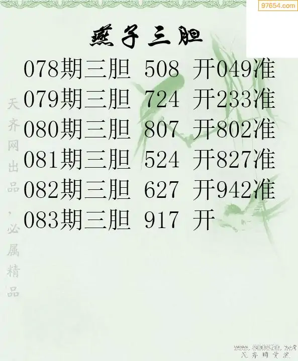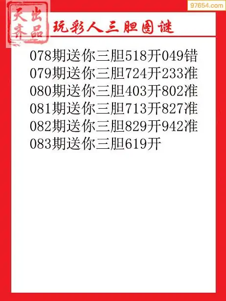 083期97654本站收集胆码出号预测