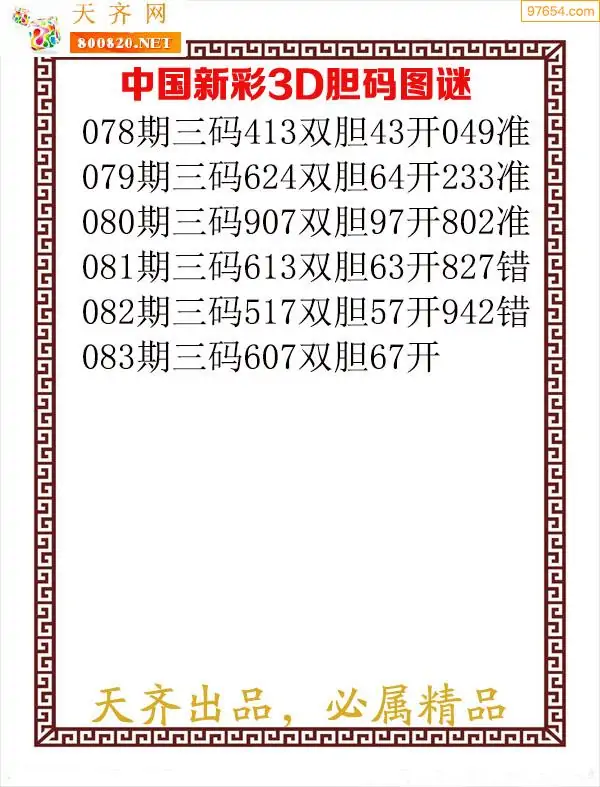 天齐网3d26年083期胆码图 胆:54
