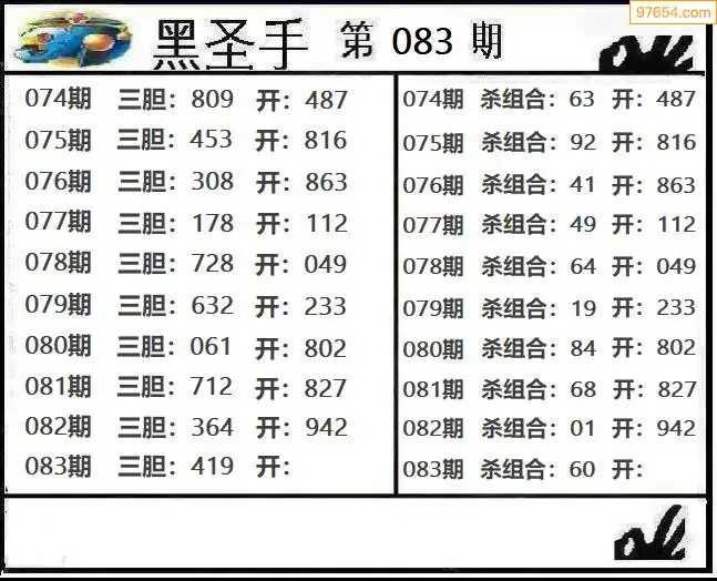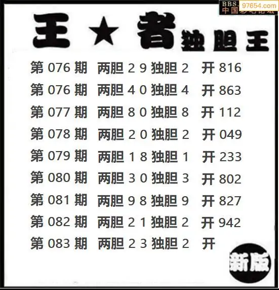 083期97654本站收集胆码出号预测