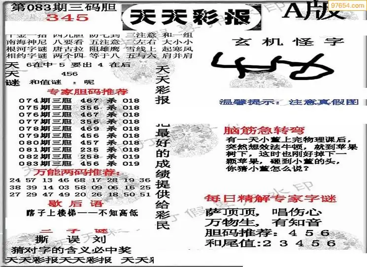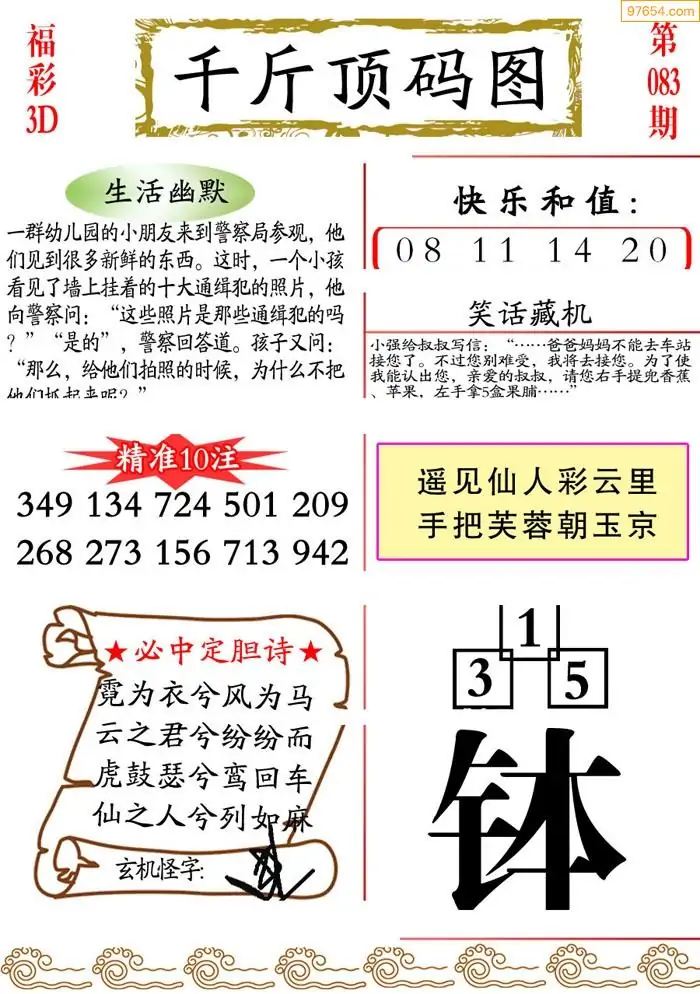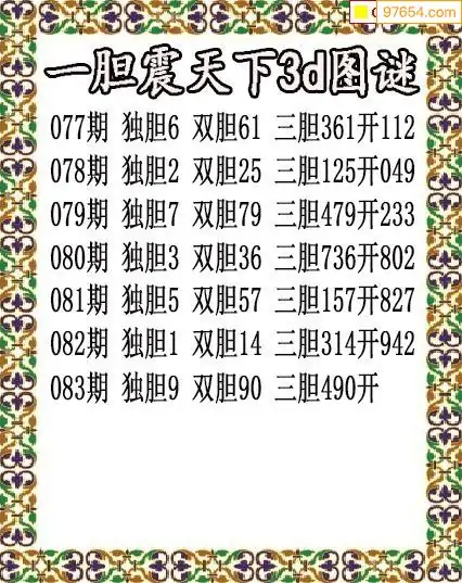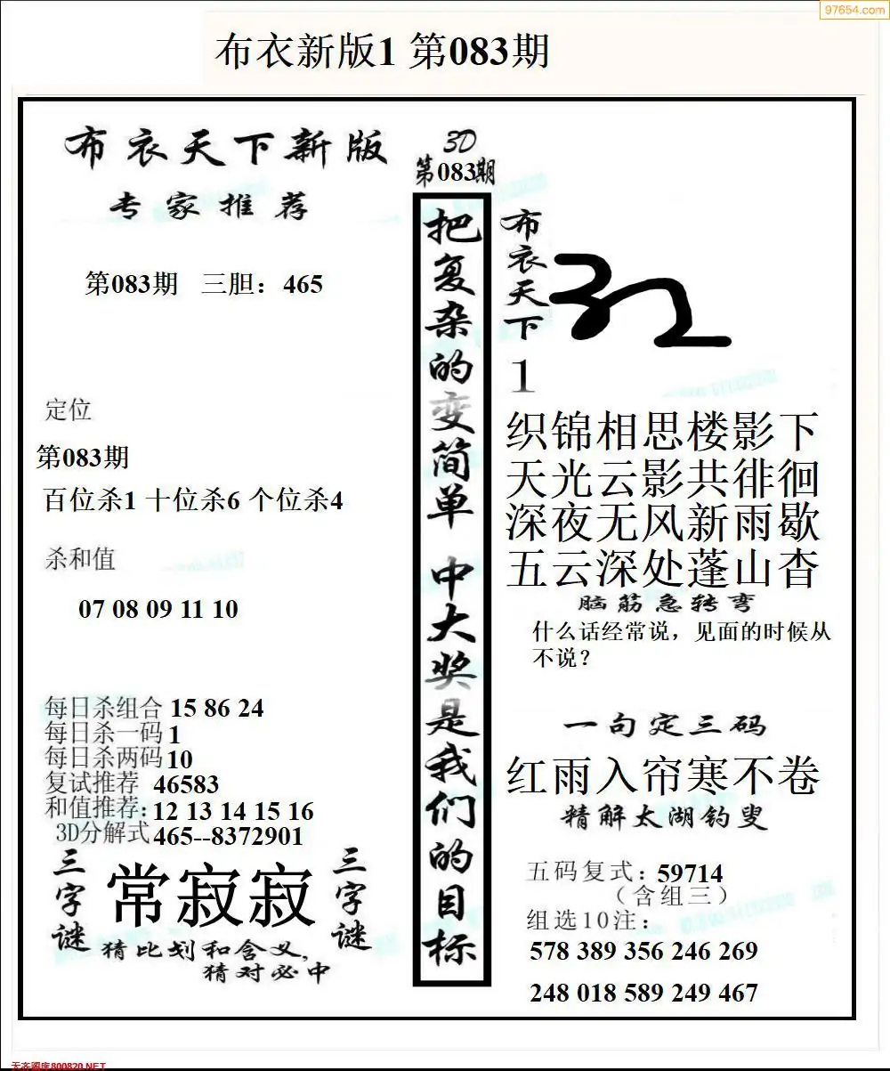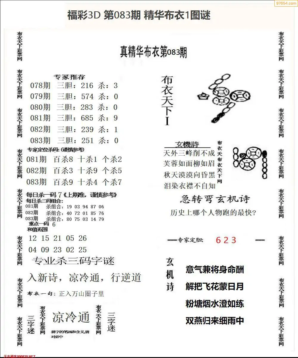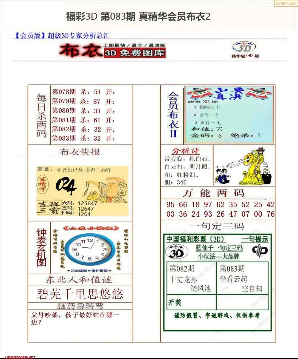 (3)2026083期3D预测总汇全图_福彩3d图谜字谜总汇