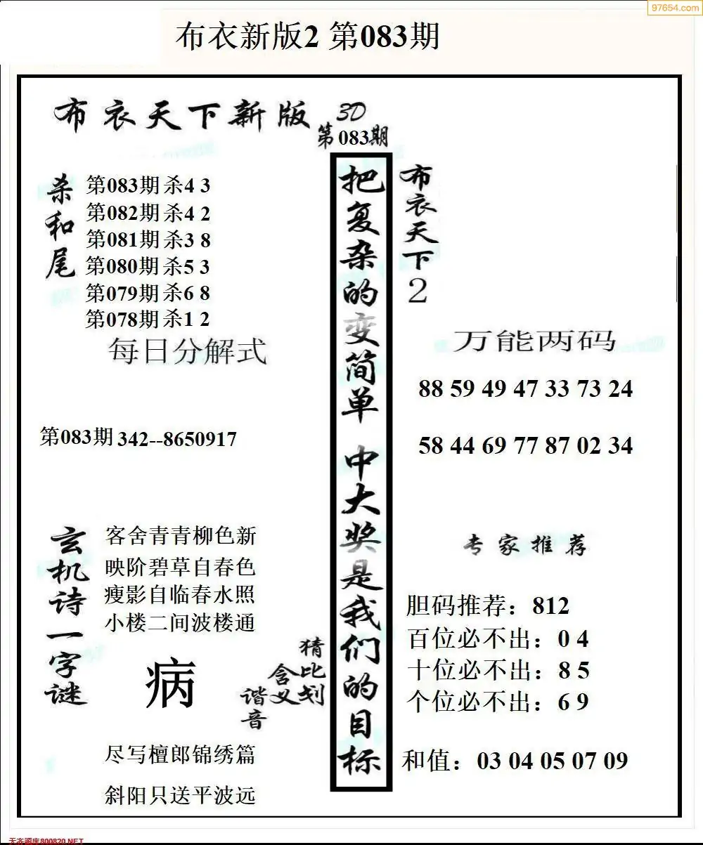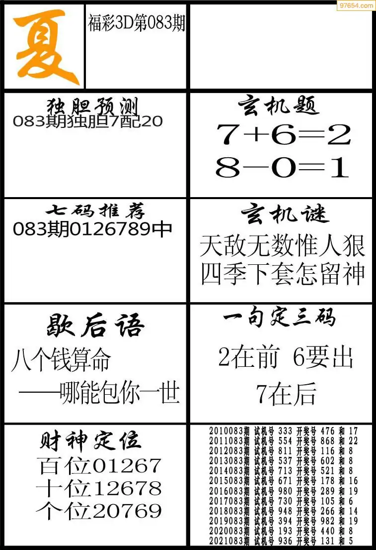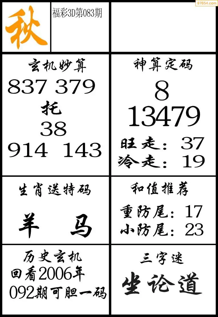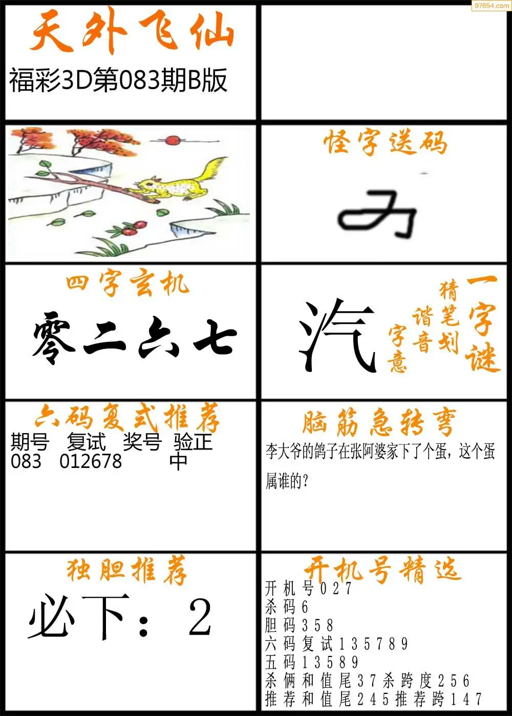(2)26年083期本期3d图迷汇总_福彩3D图谜总汇图