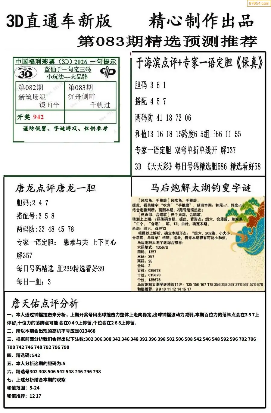 26年083期3D各板块资料整合汇总