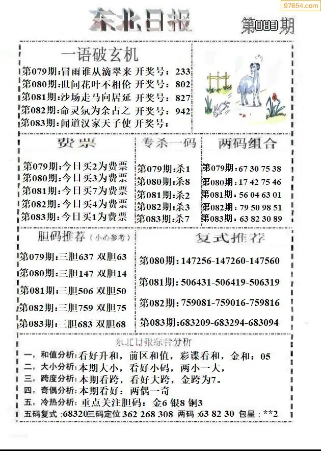 26年083期3d选号彩报图谜画谜