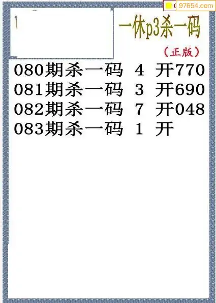 26年083期排列三一休杀码图谜