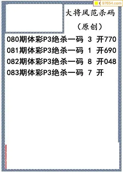 26年083期大将风范p3杀码体彩图谜