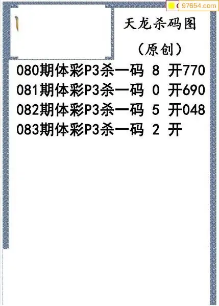 26年083期天龙体彩P3杀码图谜