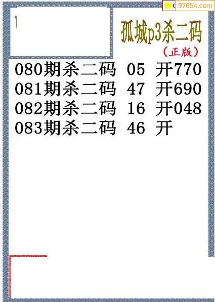 26年083期孤城本期杀码排3图谜
