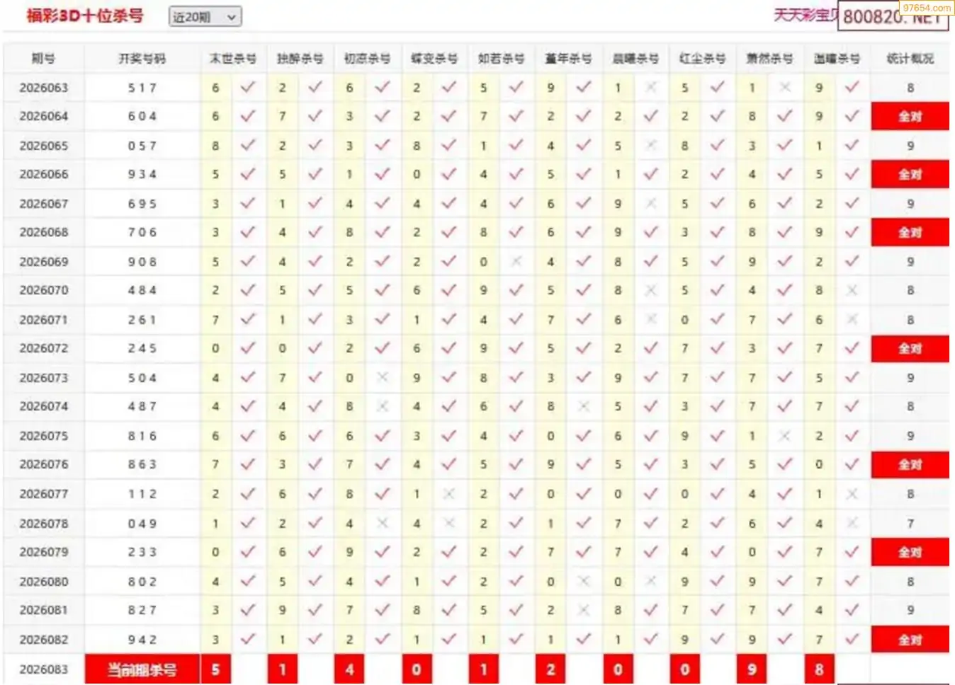 3D083期天中财神原创杀码条件汇总