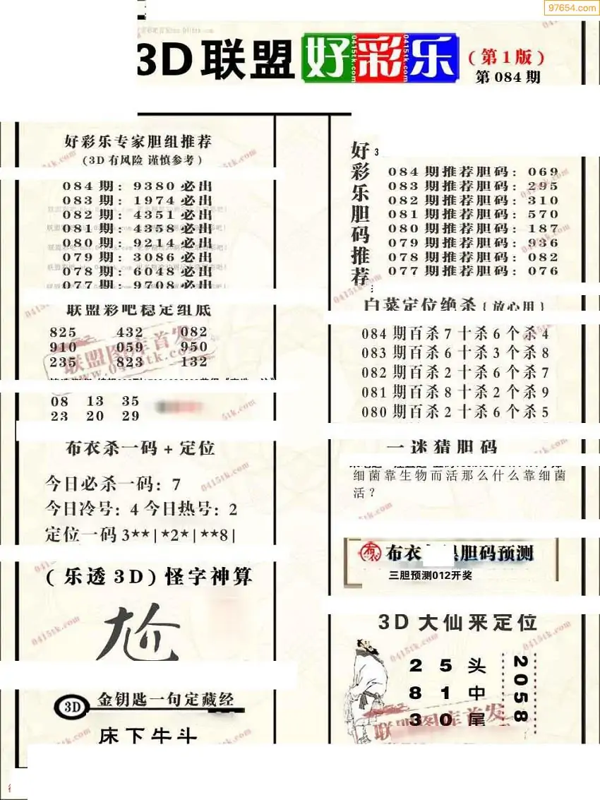 2026084期联盟好彩乐直通车1