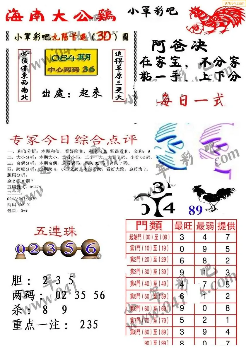 086期3D牛彩预测报+彩吧字谜报