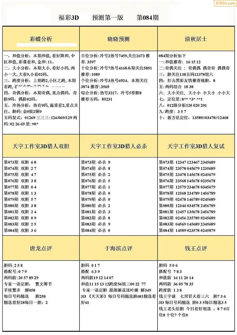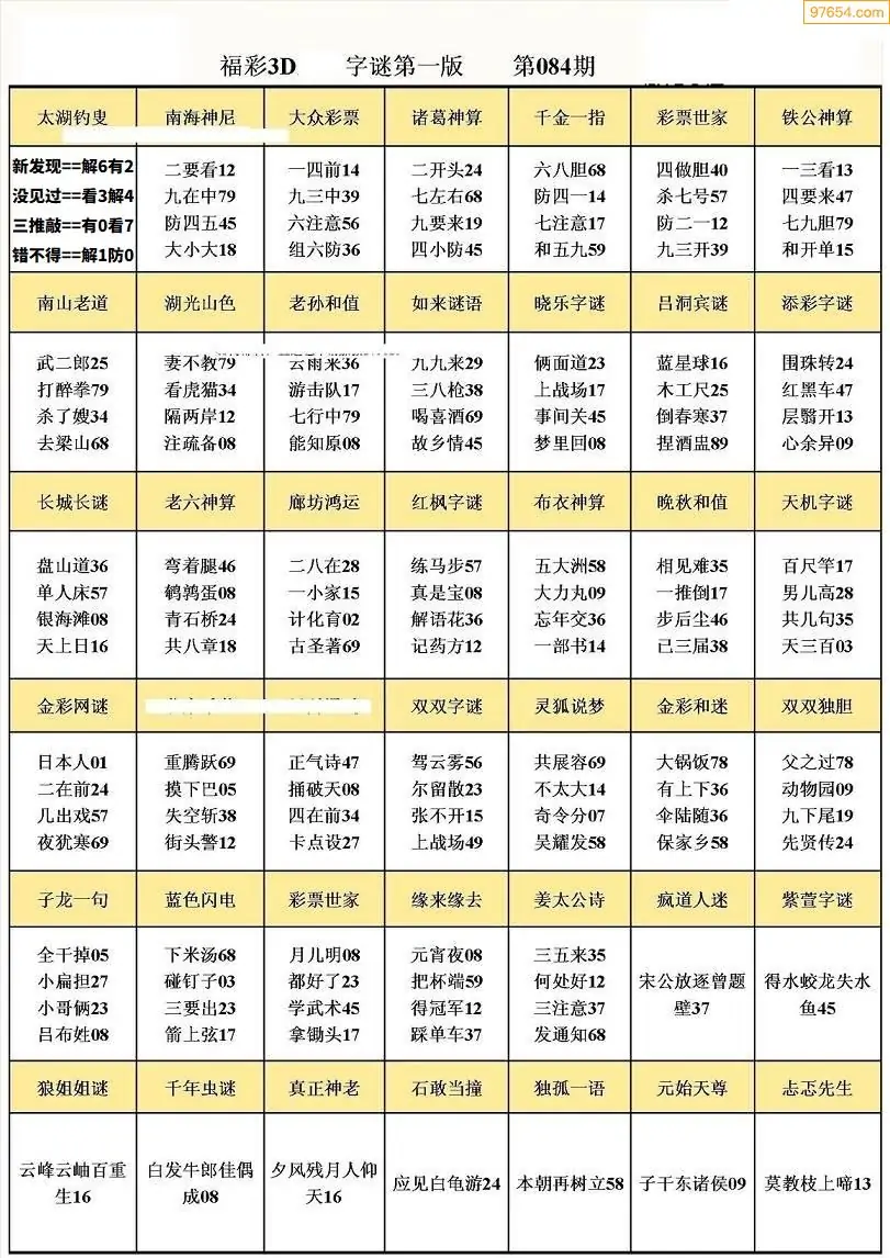 084期3D牛彩预测报+彩吧字谜报