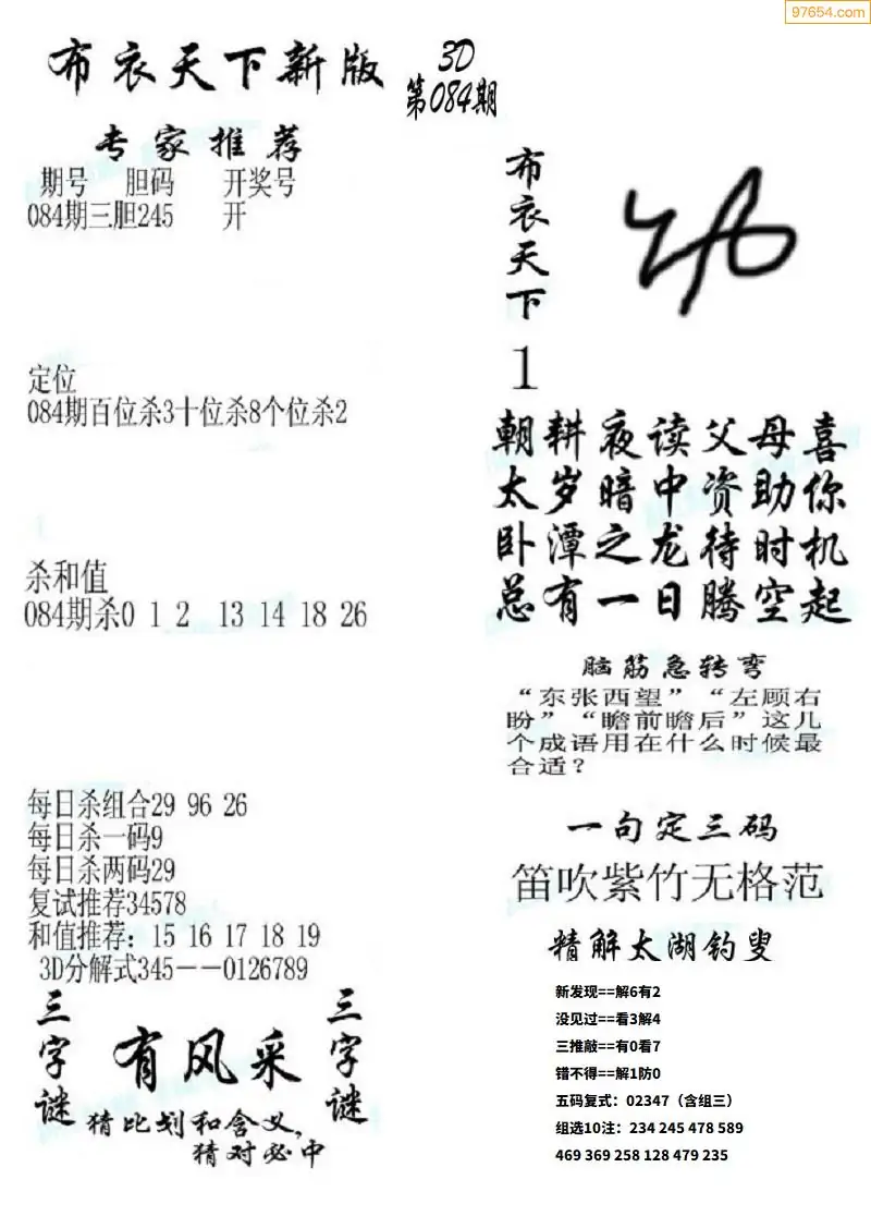 福彩084期3d真精华布衣+布衣早报(转载)