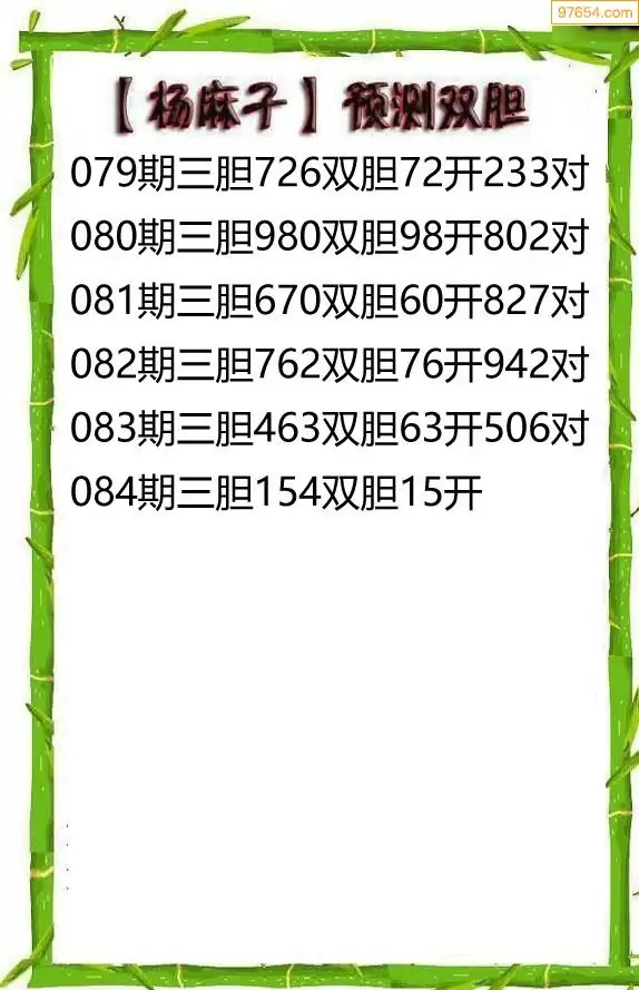 26084期杨麻子_福彩胆码计算方法