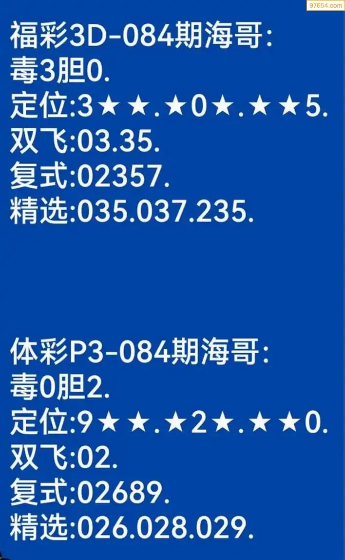 2026年084期普度众生今晚3D推荐胆码 5连中