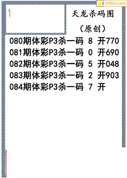 26年084期天龙体彩P3杀码图谜