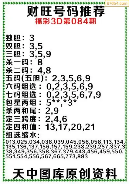 (3)2026084期3D预测总汇全图_福彩3d图谜字谜总汇
