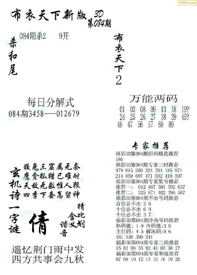(2)26年084期本期3d图迷汇总_福彩3D图谜总汇图