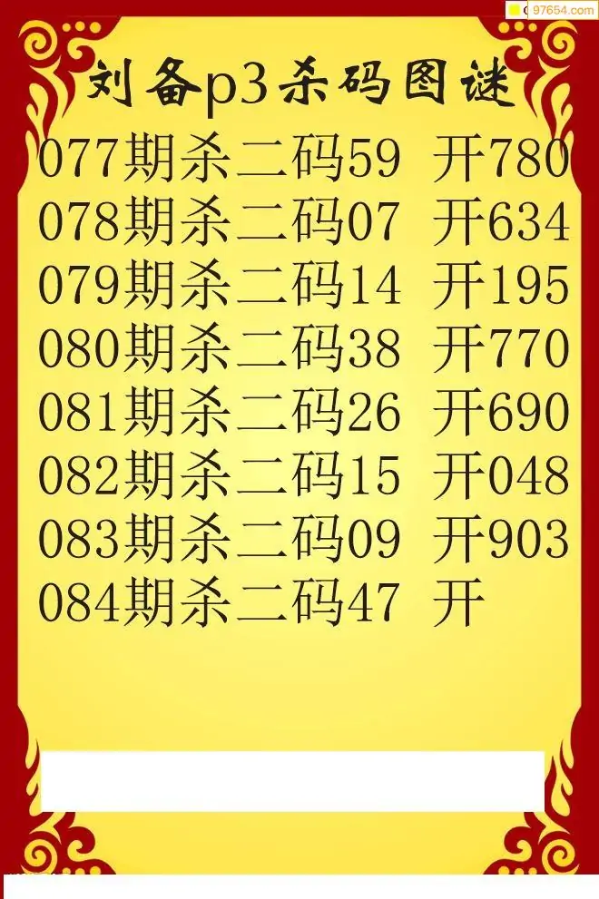 26年084期刘备p3杀码图谜
