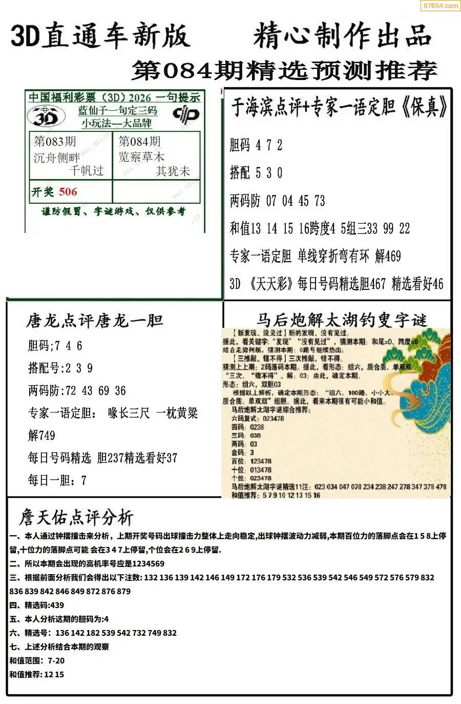 26年084期3D各板块资料整合汇总