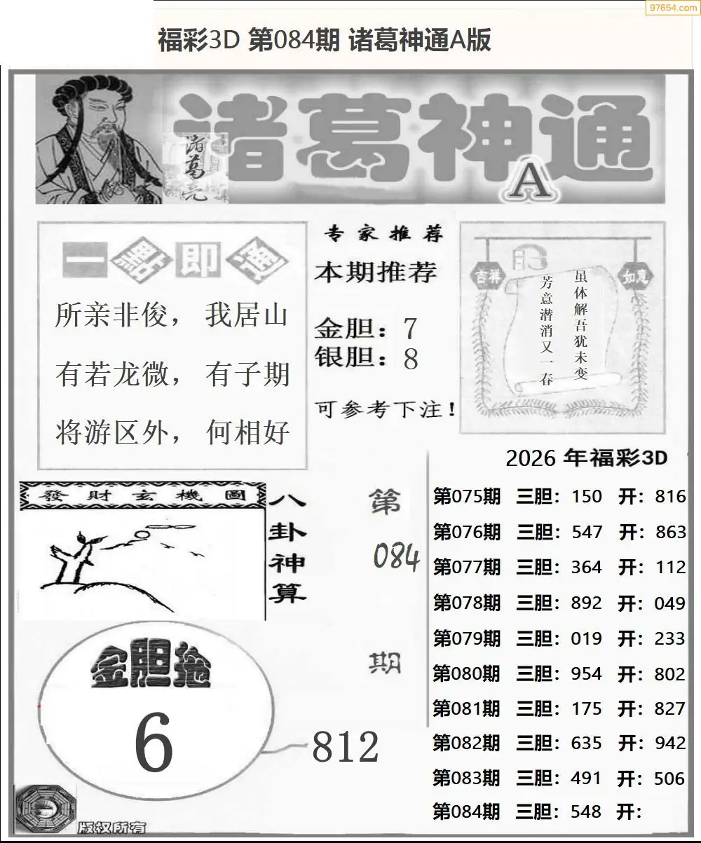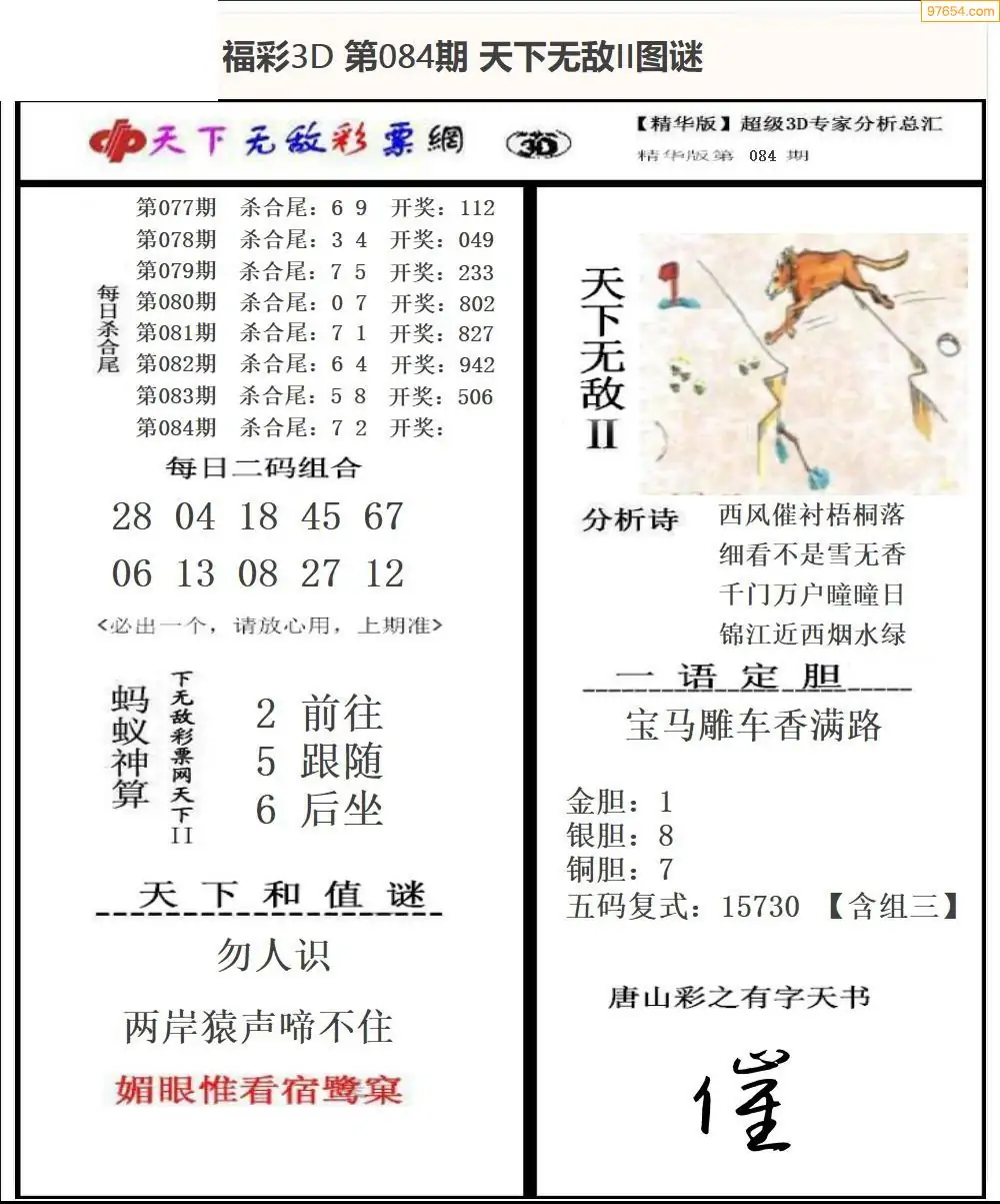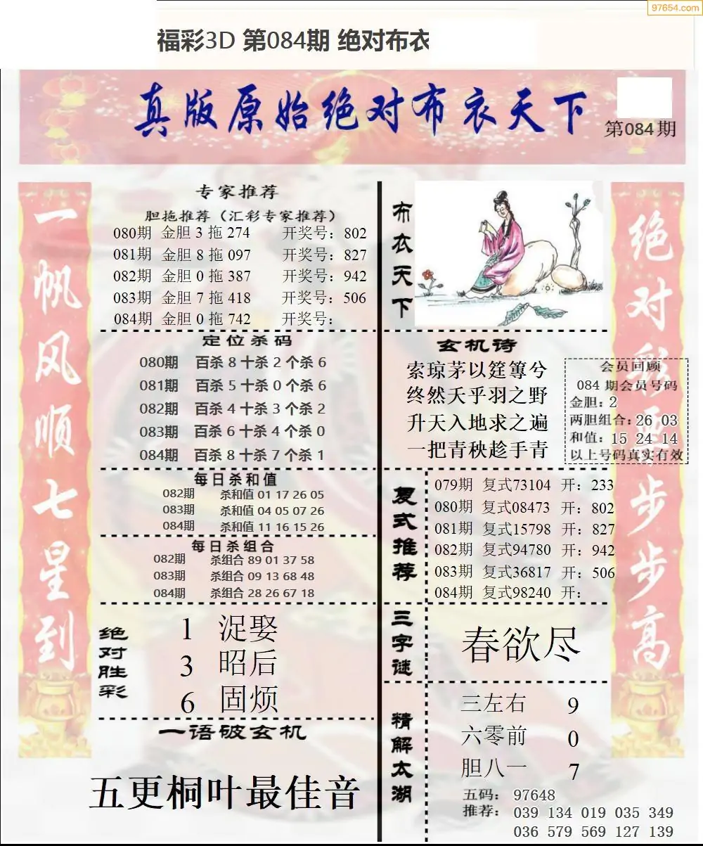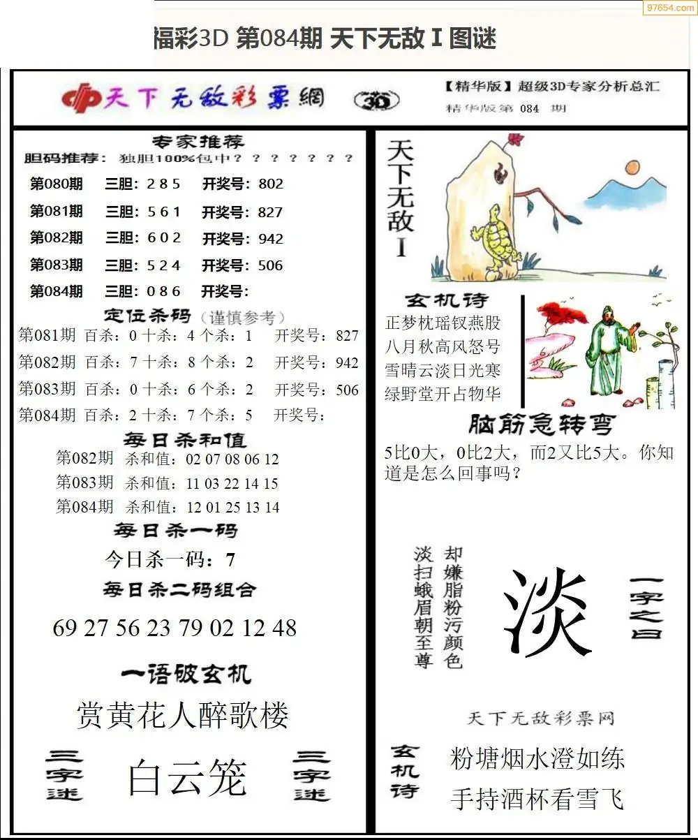 26年084期3d选号彩报图谜画谜
